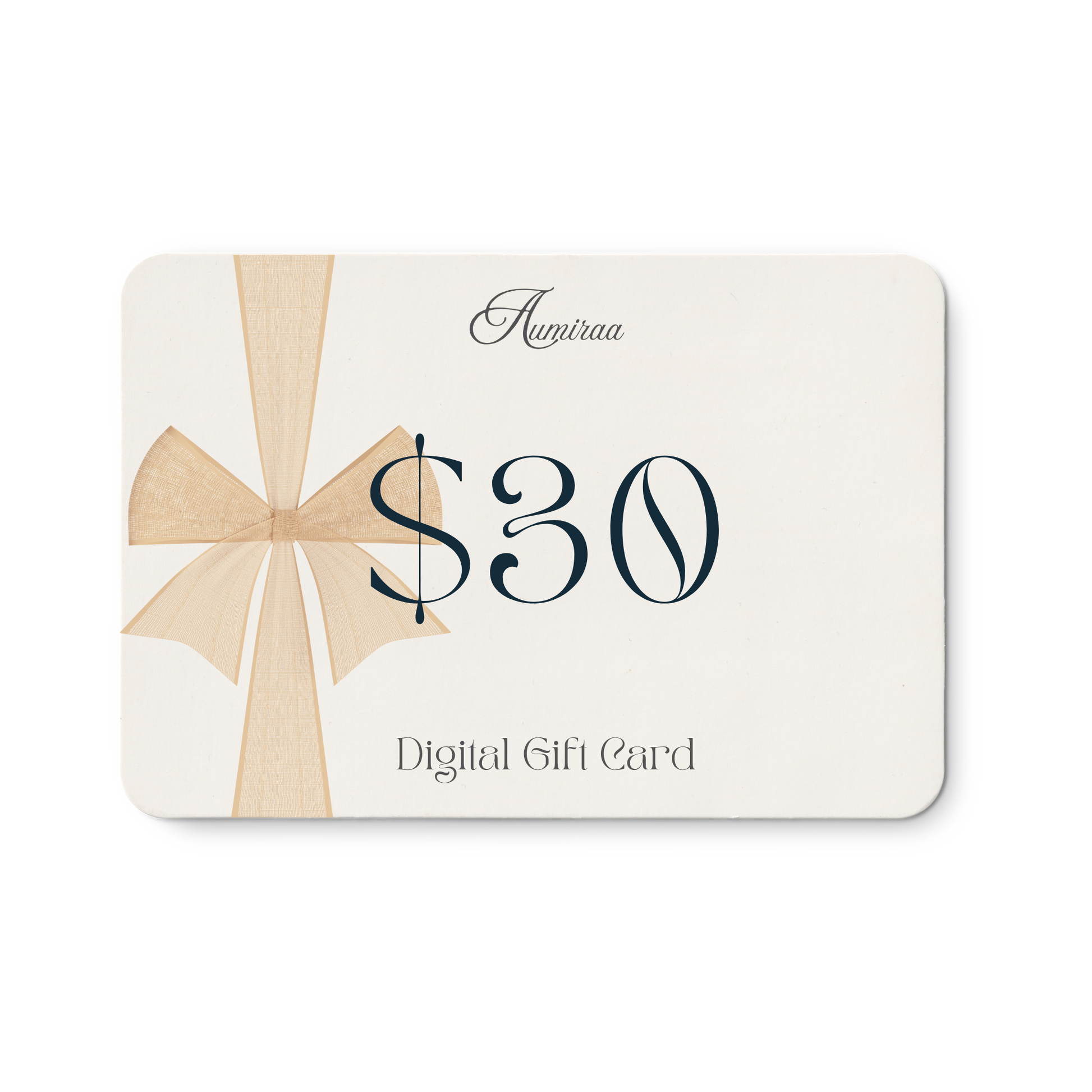 Aumiraa’s Digital Gift Cards make thoughtful gifting simple and instant.