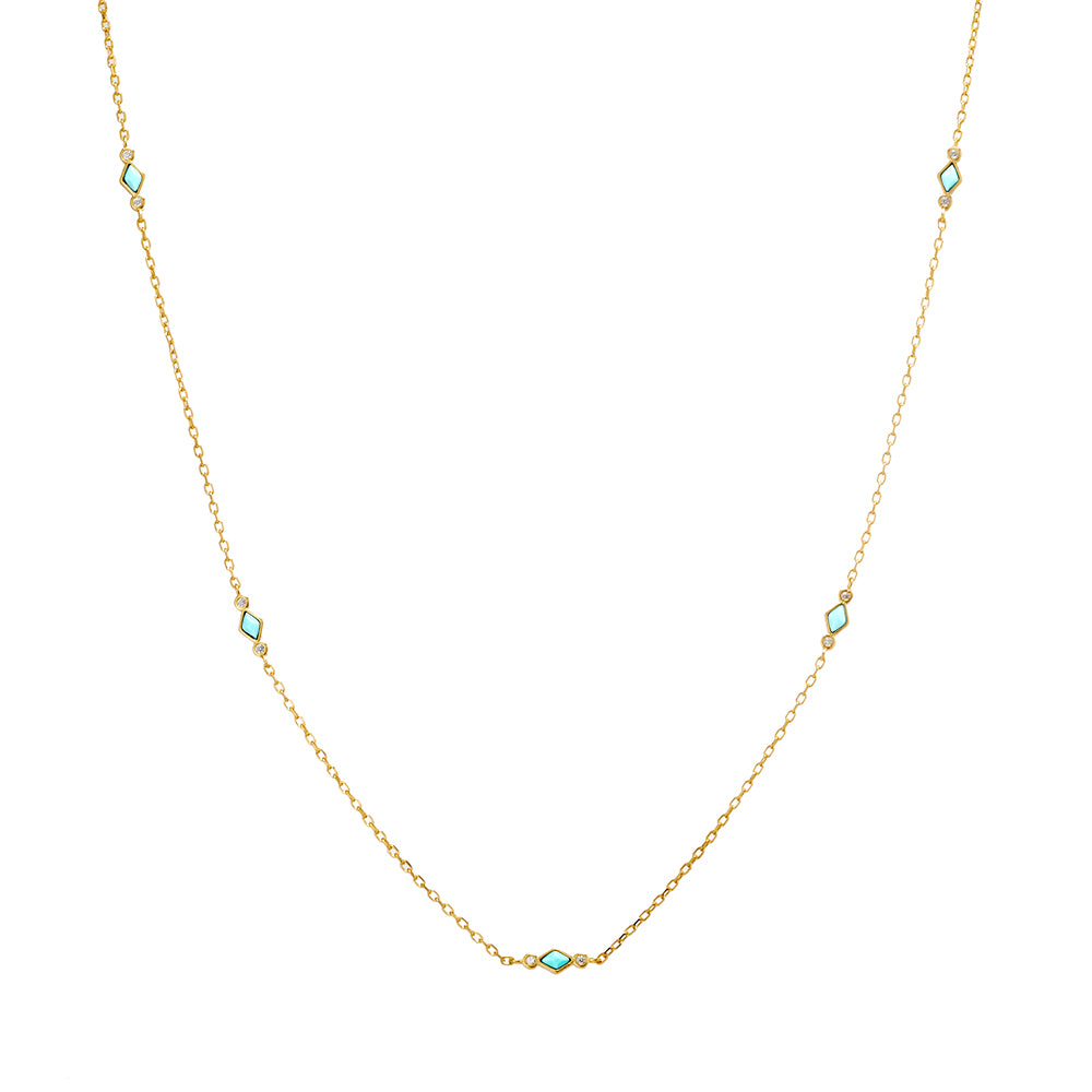 The Ocean Drift Necklace shows off pretty turquoise stones on a fine gold chain, giving your look a fun, beachy vibe you can wear every day.